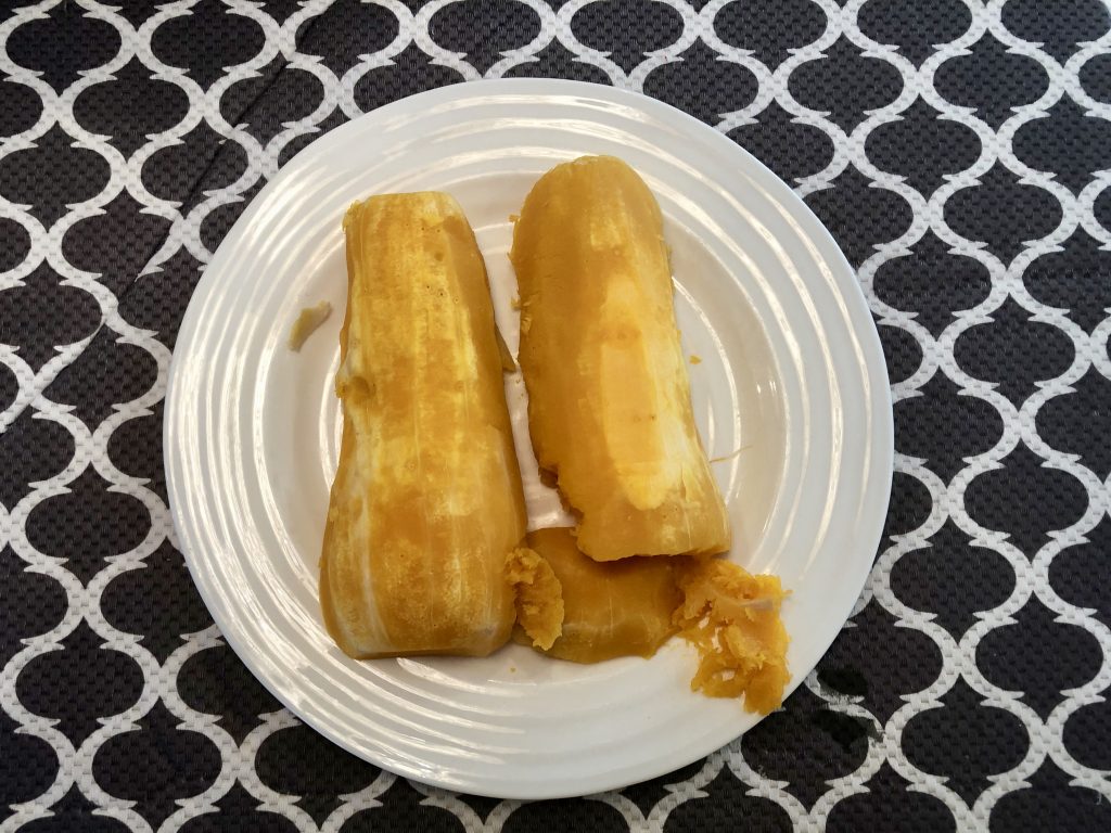 When I discarded the skin, I transferred the squash to the dinner plate.