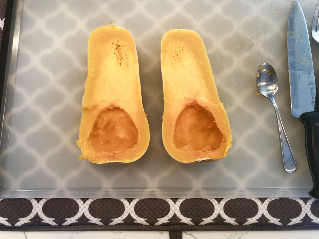 A butternut squash may seem a little more intimidating than a sweet potato, but I promise it is easy, especially with my secret trick.